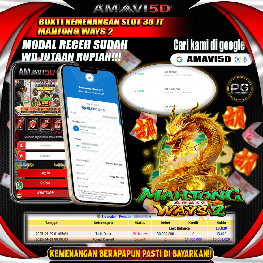 AMAVI5D JACKPOT SLOT T AMAVI5D JACKPOT MAHJONG WAYS 2 Rp 30.000.000 SELASA, 29 APRIL 2025